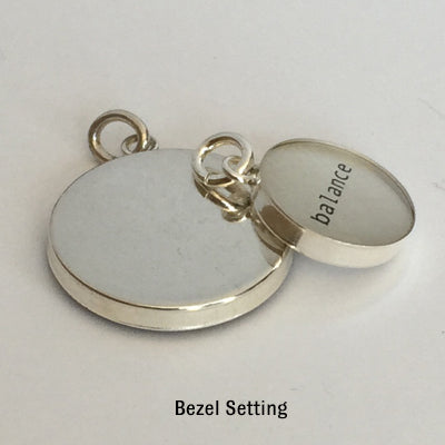 Picture or Tiny Type images can be made as a necklace, earrings, charm or key ring. All images are printed onto gleaming sterling silver, finished with resin. Pendants start at $30 with the final price determined by pendant size and cord / chain options. Key rings are available in one size, bezel set and are $45.